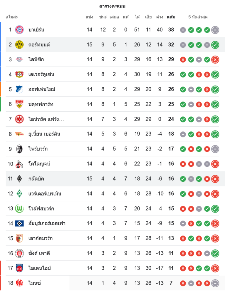 📊 สถานการณ์ในตารางคะแนนบุนเดสลีกา