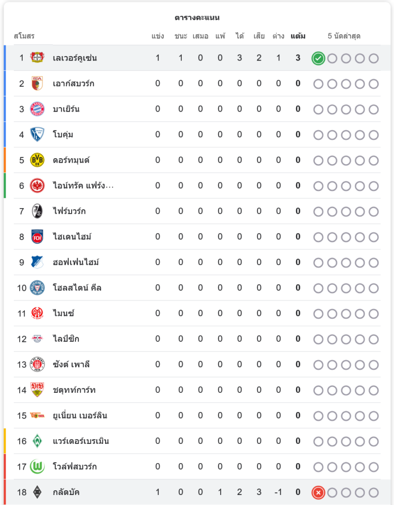 ตารางคะแนนบุนเดสลีกาล่าสุด