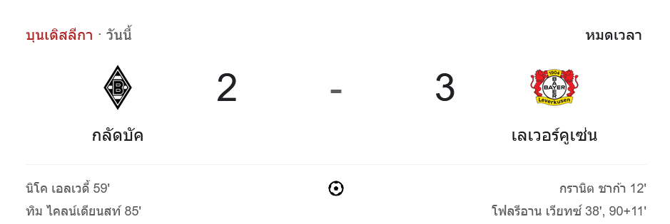 ผลบอลบุนเดสลีกา 2024 ระหว่าง ทีมโบรุสเซีย มึนเช่นกลัดบัค vs ทีมไบเออร์ เลเวอร์คูเซิน วันนี้ 24/8/67 ดูบอลย้อนหลัง คลิปไฮไลท์ ดูบอลบุนเดสลีกา 2024