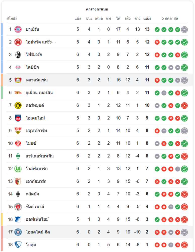 ผลเสมอนัดนี้ทำให้ ไบเออร์ เลเวอร์คูเซิน มี 11 คะแนนจาก 6 นัด อยู่อันดับที่ 5 ของตาราง บุนเดสลีกา 2024 ขณะที่ โฮลสไตน์ คีล ยังอยู่ในอันดับที่ 17 โดยมีเพียง 2 คะแนนจาก 6 นัด ต้องเร่งเครื่องในเกมถัดไปหากหวังจะหนีจากโซนตกชั้น