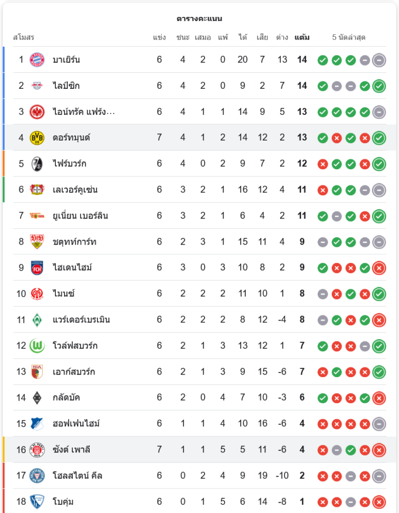 ตารางคะแนนบุนเดสลีกา 2024 ระหว่าง โบรุสเซีย ดอร์ทมุนด์ 2-1 ซังค์ เพาลี