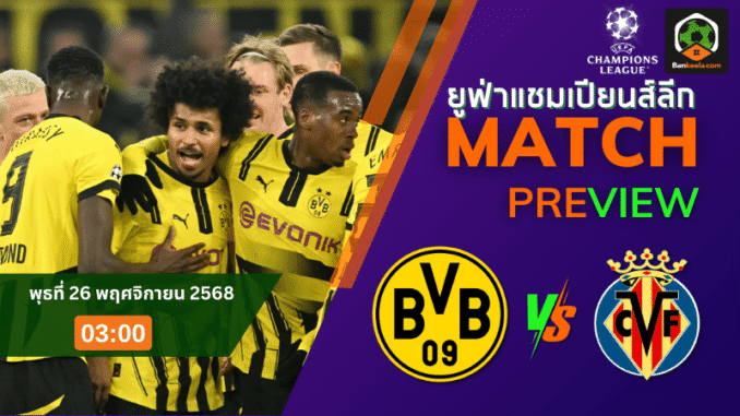วิเคราะห์บอลยูฟ่าแชมเปียนส์ลีก ระหว่าง โบรุสเซีย ดอร์ทมุนด์ พบ บียาร์เรอัล 25/11/68