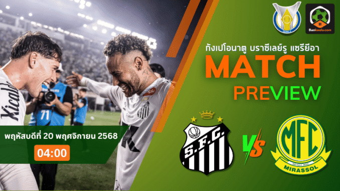 ซานโตสเปิดบ้านดวลเดือดมิราสโซล ศึกใหญ่กังเปโอนาตู บราซีเลย์รู แซรียีอา บ้านกีฬาเจาะลึกฟอร์มล่าสุด สถิติ และทรรศนะก่อนเกม พร้อมชี้ช่องทีมไหนน่าเชียร์จากราคาต่อ 0.25 และอัปเดตคู่อื่นใน ตารางแข่งบอล และ โปรแกรมบอลวันนี้ สำหรับคอบอลสายลุ้นตัวจริง