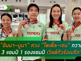 “อันนา-มูนา” ควง “ไตเติ้ล-เจน” กลับถึงไทยท่ามกลางการต้อนรับอบอุ่น หลังกวาด 3 แชมป์ 1 รองแชมป์เวิลด์ทัวร์อเมริกา กระหึ่มวงการแบดมินตันไทย