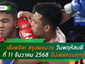 ผลมวยไทยเมื่อคืนเดือดจัด! สรุปผลมวย วันพฤหัสบดีที่ 11 ธันวาคม 2568 อัปเดตครบทุกคู่