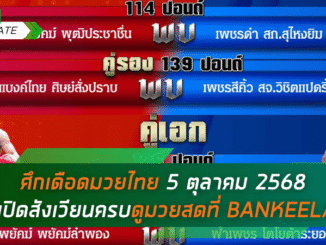 ศึกเดือดมวยไทย 5 ตุลาคม 2568 เปิดสังเวียนครบทุกช่อง ดูมวยไทยสดวันนี้ที่ BANKEELA