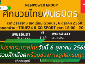 โปรแกรมมวยไทยวันนี้ 6 ตุลาคม 2568 รวมศึกเดือดพร้อมช่องทางดูสดครบทุกคู่