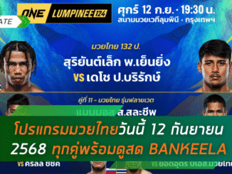 โปรแกรมมวยไทยวันนี้ 12 กันยายน 2568 ลุ้นมันส์ทุกคู่พร้อมช่องทางดูสด BANKEELA