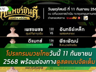โปรแกรมมวยไทยวันนี้ 11 กันยายน 2568 พร้อมช่องทางดูสดแบบจัดเต็ม