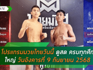โปรแกรมมวยไทยวันนี้ อัปเดตพร้อมลิ้งก์ดูสด ครบทุกศึกใหญ่ วันอังคารที่ 9 กันยายน 2568