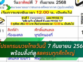 โปรแกรมมวยไทยวันนี้ 7 กันยายน 2568 พร้อมลิ้งก์ดูสดครบทุกศึกใหญ่