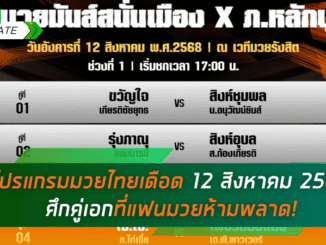 โปรแกรมมวยไทยเดือด 12 สิงหาคม 2568 – ศึกคู่เอกที่แฟนมวยห้ามพลาด!