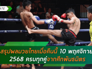 ระเบิดความเดือด! สรุปผลมวยไทยเมื่อคืนนี้ 10 พฤศจิกายน 2568 ครบทุกคู่จากศึกพันธมิตร – บ้านกีฬา รวมให้แล้วจบในที่เดียว
