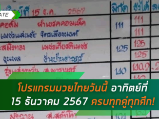 ดูมวยไทย วันนี้ อาทิตย์ที่ 15 ธันวาคม 2567 ครบทุกคู่ทุกศึก!