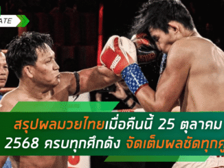 สรุปผลมวยไทยเมื่อคืนนี้ 25 ตุลาคม 2568 ครบทุกศึกดัง จัดเต็มผลชัดทุกคู่ ดูมวยไทย ย้อนหลังได้ที่ BANKEELA