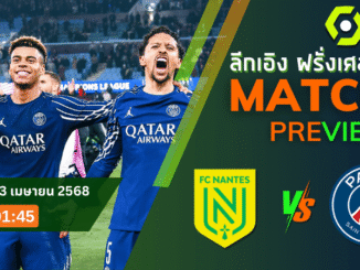 ดูบอลสดลีกเอิง ฝรั่งเศส 2025 ถ่ายทอดสด น็องต์ พบ ปารีส แซงต์ แชร์กแมง 22/4/68
