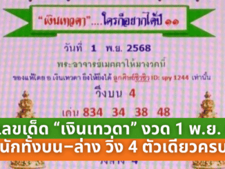มาแล้ว! เปิดเลขเด็ด “เงินเทวดา” งวด 1 พ.ย. 68 จัดหนักทั้งบน–ล่าง วิ่ง 4 ตัวเดียวครบสูตร คอหวยแห่ส่อง!