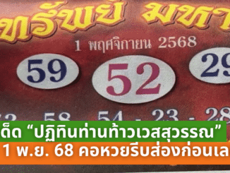 มาแล้ว! เลขเด็ด “ปฏิทินท่านท้าวเวสสุวรรณ” งวด 1 พ.ย. 68 คอหวยรีบส่องก่อนเลขอั้น!