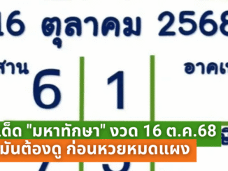 รีบส่อง! เลขเด็ด “มหาทักษา” งวด 16 ตุลาคม 68 ของมันต้องดู ก่อนหวยหมดแผง