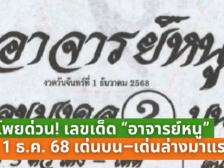 เปิดโพยด่วน! เลขเด็ด “อาจารย์หนู” งวด 1 ธ.ค. 68 เด่นบน–เด่นล่างมาแรง คอหวยรีบเก็บก่อนอั้น!