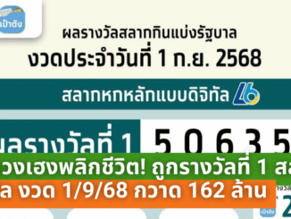 คนดวงเฮงพลิกชีวิต! ถูกรางวัลที่ 1 สลากดิจิทัล งวด 1/9/68 กวาด 162 ล้าน คอหวยแห่ส่อง เลขเด็ด งวดต่อไป