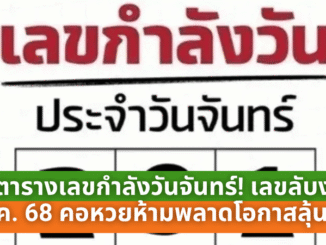 เปิดตารางเลขกำลังวันจันทร์! เลขลับงวด 1 ธ.ค. 68 คอหวยห้ามพลาดโอกาสลุ้นรวย