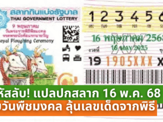 แปลปกสลาก 16 พฤษภาคม 2568 ฉบับวันพืชมงคล เผยเลขเด็ดจากพิธีศักดิ์สิทธิ์แห่งชาติ พร้อมสรุปแนวทางเลขสองตัว-สามตัวห้ามพลาด ติดตามวิเคราะห์ลึกได้ที่ บ้านกีฬา