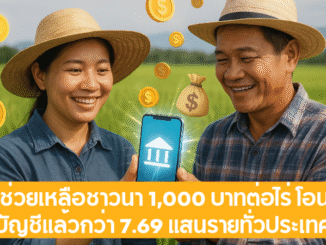 เงินช่วยเหลือชาวนา 1,000 บาทต่อไร่ โอนเข้าบัญชีแล้วกว่า 7.69 แสนรายทั่วประเทศ