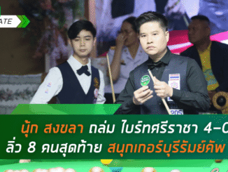 นุ้ก สงขลา โชว์ฟอร์มเดือด! ถล่มไบร์ท ศรีราชา 4-0 ลิ่ว 8 คนสุดท้ายสนุกเกอร์ “บุรีรัมย์คัพ” แบบไม่ไว้หน้า
