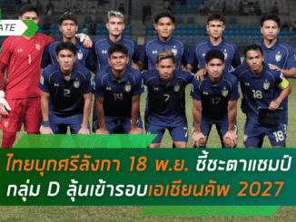 ไทยบุกศรีลังกา 18 พ.ย. ชี้ชะตาแชมป์กลุ่ม D ลุ้นเข้ารอบเอเชียนคัพ 2027 สุดเดือด