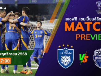 วิเคราะห์บอลเอเอฟซี แชมเปี้ยนส์ลีก อีลิท ระหว่าง วุลซาน ฮุนได พบ บุรีรัมย์ ยูไนเต็ด 26/11/68