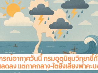 พยากรณ์อากาศวันนี้ กรมอุตุนิยมวิทยาชี้ทั่วไทยฝนลดลง แต่ภาคกลาง-ใต้ยังเสี่ยงฟ้าคะนอง ชาวเรือเฝ้าระวังคลื่นสูง!