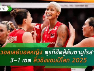 ตุรกีโชว์ฟอร์มสุดโหด โค่นสหรัฐฯ 3-1 เซต ศึกวอลเลย์บอลหญิงชิงแชมป์โลก 2025 ทะลุตัดเชือกพบญี่ปุ่น เกมเดือดแฟนลูกยางห้ามพลาด ติดตามอัปเดตสดทุกแมตช์ได้ที่ บ้านกีฬา