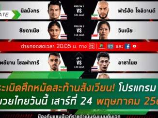 ระเบิดศึกหมัดสะท้านสังเวียน! โปรแกรมมวยไทยวันนี้ เสาร์ที่ 24 พฤษภาคม 2568 พร้อมช่องทางดูสดครบทุกศึกดัง