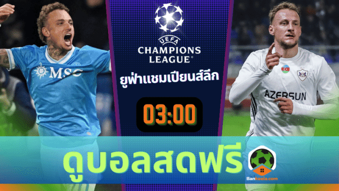 ทางเข้าดูบอลยูฟ่าแชมเปียนส์ลีก ดูบอลสดผ่านช่องทางนี้ได้เลย โปรแกรมบอล ถ่ายทอดสด ทีมนาโปลี พบ ทีมคาราบัค 25/11/68 ดูบอลออนไลน์ บ้านกีฬา รับลิ้งดูบอลได้แล้วตอนนี้