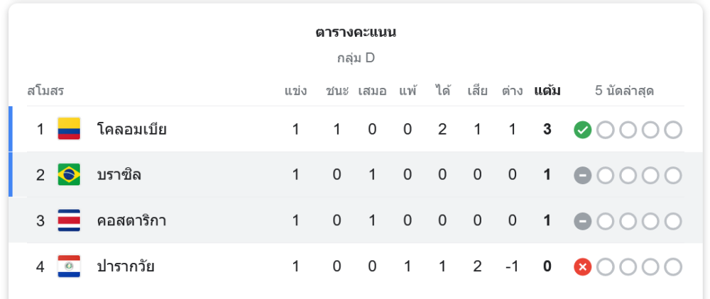 ผลบอลโคปาอเมริกา 2024 บราซิล 0-0 คอสตาริกา กลุ่ม D 25/06/67