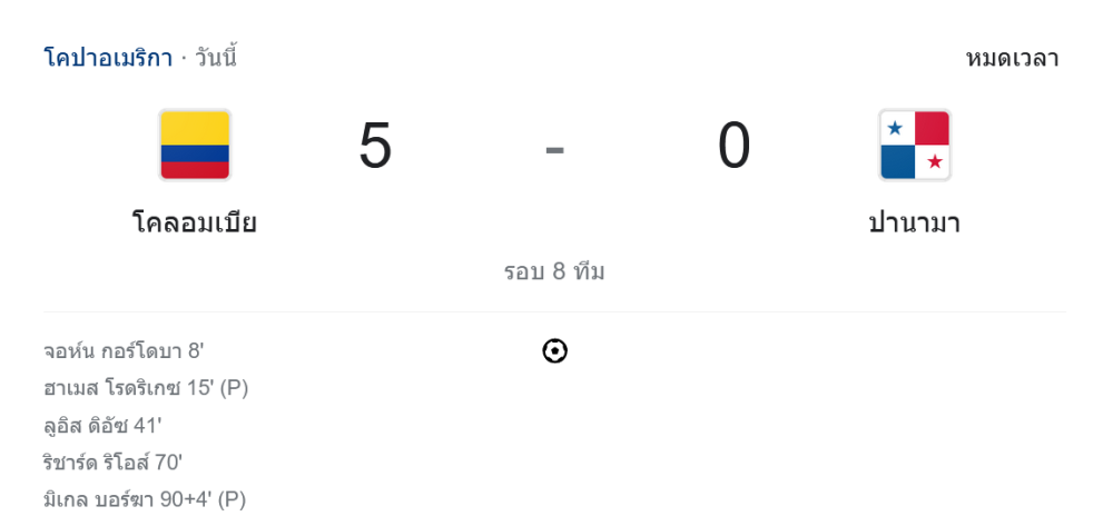 ผลบอลโคปาอเมริกา 2024 รอบ 8 ทีม ทีมชาติโคลัมเบีย vs ทีมชาติปานามา วันนี้ 7 กรกฎาคม 2567 ดูบอลย้อนหลัง คลิปไฮไลท์ ดูบอลโคปาอเมริกา 2024