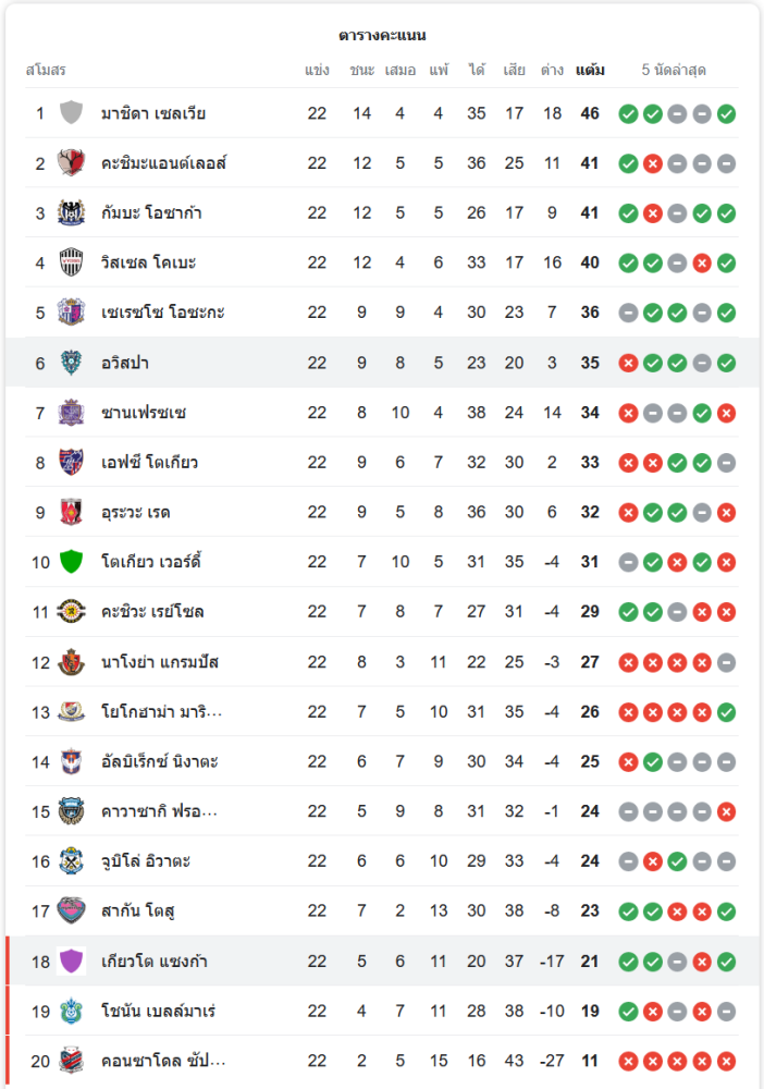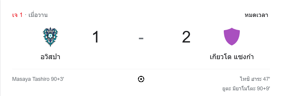 ผลบอลเจลีก ดิวิชัน 1 2024: อวิสปา ฟูกูโอกะ 1-2 เกียวโต แซงก้า