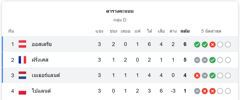 ศึกยูโร 2024 รอบแบ่งกลุ่ม กลุ่มดี นัดสุดท้าย เปิดฉากสุดมันส์เมื่อ ออสเตรีย เฉือนชนะ เนเธอร์แลนด์ สุดระทึก 3-2 คว้าแชมป์กลุ่มไปครอง