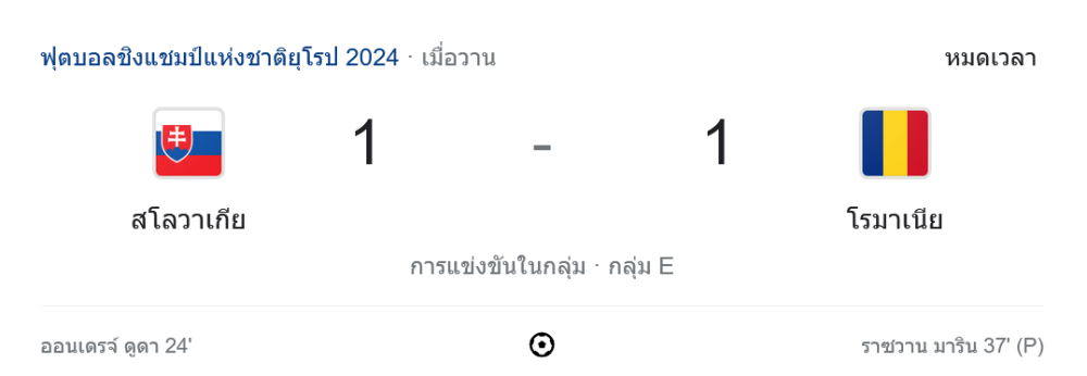 ถ่ายทอดสดฟุตบอลยูโร 2024 กลุ่ม E ทีมชาติสโลวาเกีย vs ทีมชาติโรมาเนีย วันนี้ 27 มิถุนายน 2567 ดูบอลย้อนหลัง คลิปไฮไลท์ ดูบอลยูโร 2024
