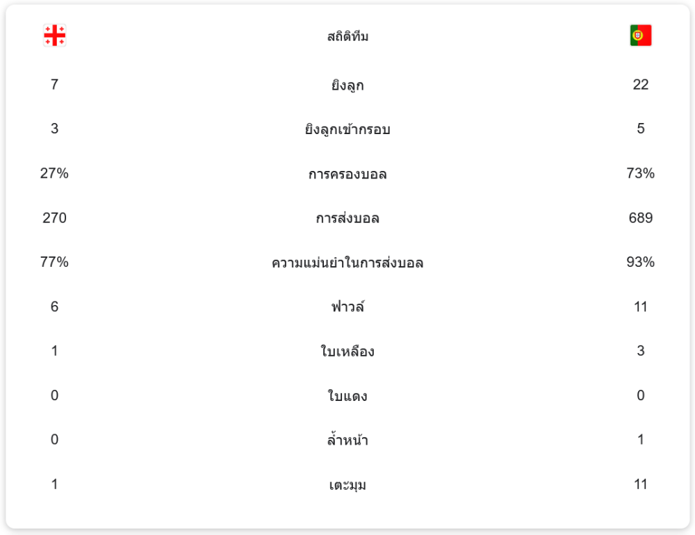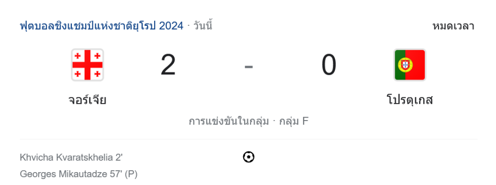 ผลบอลยูโร 2024 จอร์เจีย 2-0 โปรตุเกส กลุ่ม F 27/06/67