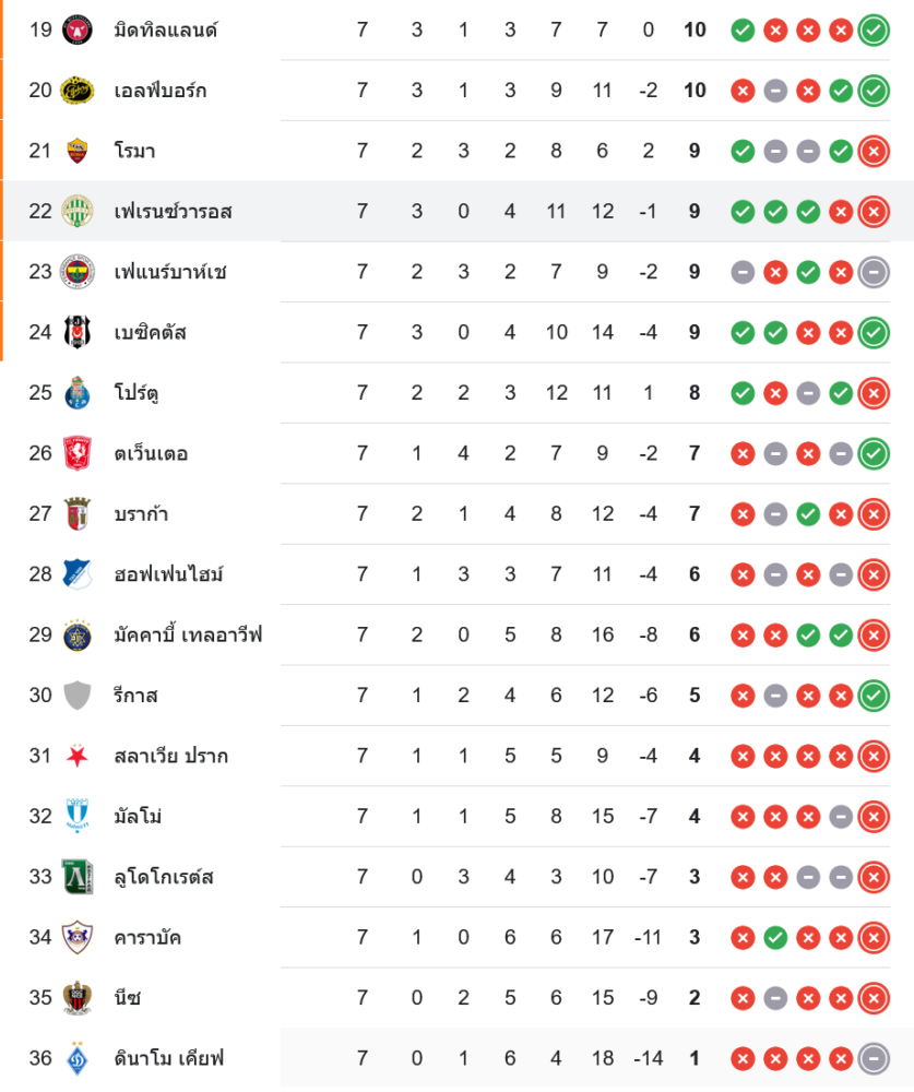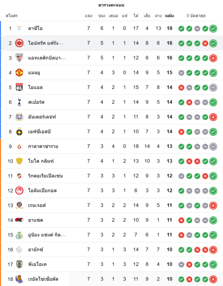 ไอน์ทรัค แฟร้งค์เฟิร์ต ขยับขึ้นไปมี 16 คะแนน ตามหลังจ่าฝูงเพียง 3 แต้ม ส่วน เฟเรนซ์วารอซี่ รั้งอันดับ 22 ของกลุ่ม มีเพียง 9 คะแนน ต้องลุ้นหนักในเกมสุดท้าย