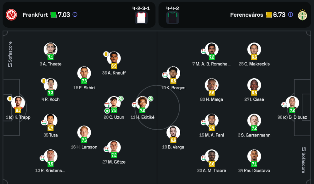 - ครองบอล: แฟร้งค์เฟิร์ต 69% – 31% เฟเรนซ์วารอซี่