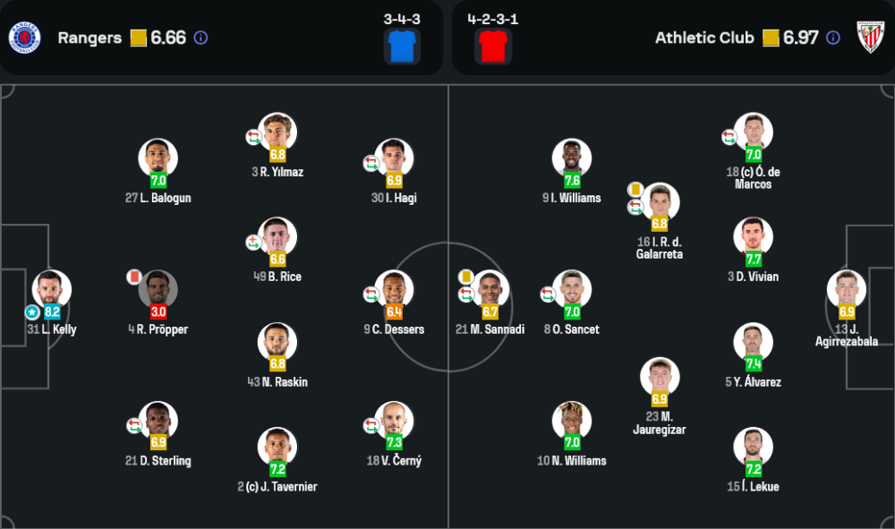 ด้านบิลเบาใช้ระบบ 4-2-3-1 โฟกัสการครองบอลและโจมตีจากปีก การเติมเกมของ มูเนียอิน และ วิลเลียมส์ สร้างปัญหาให้เรนเจอร์สหลายครั้ง การเคลื่อนที่ของแนวรุกถือว่าทำได้ดี เพียงแต่ขาดความเฉียบคมในจังหวะสุดท้าย นี่คือจุดที่เกมเปลี่ยน แม้จะครองเกมไว้ทั้งหมดแต่ก็จบสกอร์ไม่ได้ สำหรับการ วิเคราะห์บอล เกมนี้บอกได้เลยว่าจังหวะไล่ออกคือจุดเปลี่ยนสำคัญ แต่การเล่นเกมรับของเรนเจอร์สก็ต้องชื่นชมอย่างยิ่ง