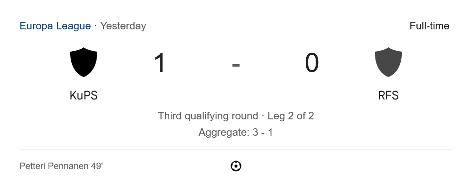 ชัยชนะนี้ทำให้คูพีเอสตบเท้าเข้ารอบเพลย์ออฟยูโรปาลีกด้วยผลรวม 3-1 ส่วน RFS หล่นไปเล่นรอบเพลย์ออฟศึกยูฟ่า ยูโรปาคอนเฟอเรนซ์ลีก เส้นทางยุโรปยังไม่จบ แต่แรงกดดันย้ายสนามไปอีกถ้วยหนึ่งแทน ซึ่งสะท้อนชัดว่าเกมนี้มีน้ำหนักต่อชะตาฤดูกาลของทั้งสองทีม