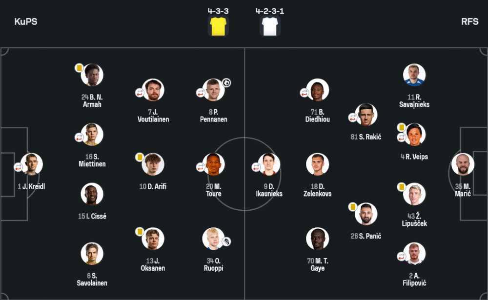 แนวรุก: 24 เบนจามิน อาร์มาห์, 7 ยานนี วูตติไลเน็น (น.46 จอสลิน ลูเยเย-ลูตุมบา), 8 เปตเตริ เพนนันเนน (C) (น.87 เปาโล ริคาร์โด)