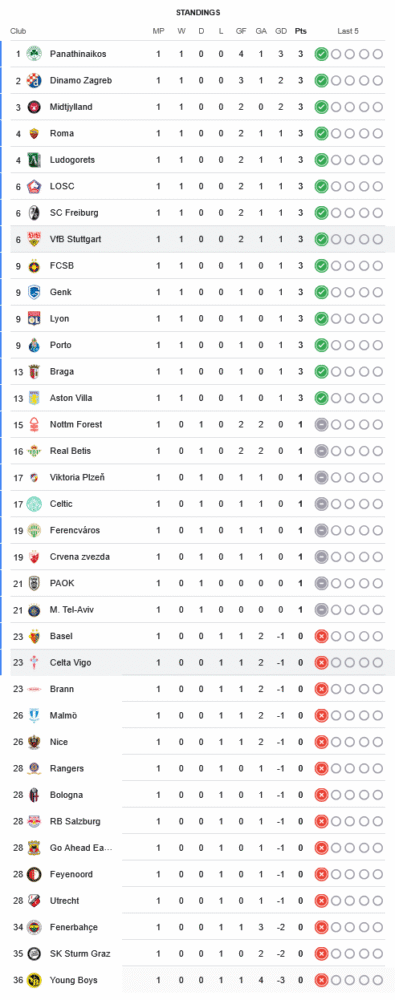 หลังจบเกมนี้ สตุ๊ตการ์ต เก็บ 3 คะแนนแรก ขึ้นอยู่ในกลุ่มหัวตารางร่วมกับทีมใหญ่อย่าง โรม่า และ ไฟร์บวร์ก ส่วน เซลต้า บีโก้ ยังไม่มีแต้ม รั้งอันดับ 23 ต้องเร่งฟอร์มในเกมต่อไปเพื่อรักษาโอกาสเข้ารอบ