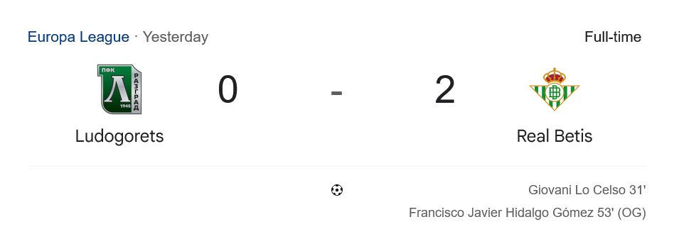 ตาม ตารางบอล เบติสจะกลับไปเล่นในศึก ลาลีกา พบ เอสปันญ่อล วันที่ 5 ตุลาคม ส่วนลูโดโกเร็ตส์จะลงเล่นในลีกพบ CSKA Sofia วันที่ 6 ตุลาคม เป็นเกมสำคัญในการเรียกความมั่นใจ