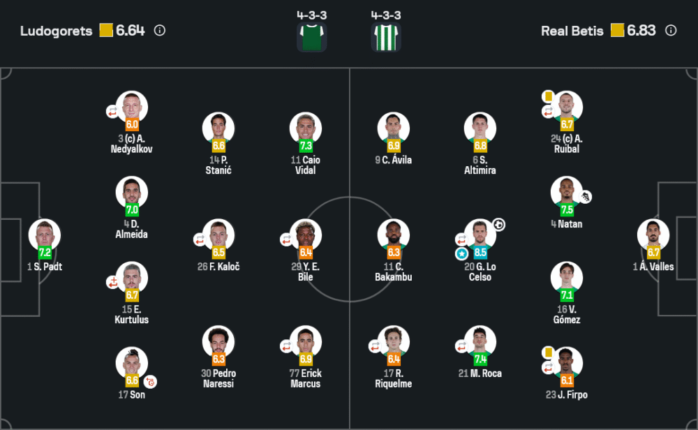 R. Rodríguez (6.4), A. Ortiz (6.4), A. Ezzalzouli (6.8), S. Amrabat (6.6), P. Fornals (6.6)