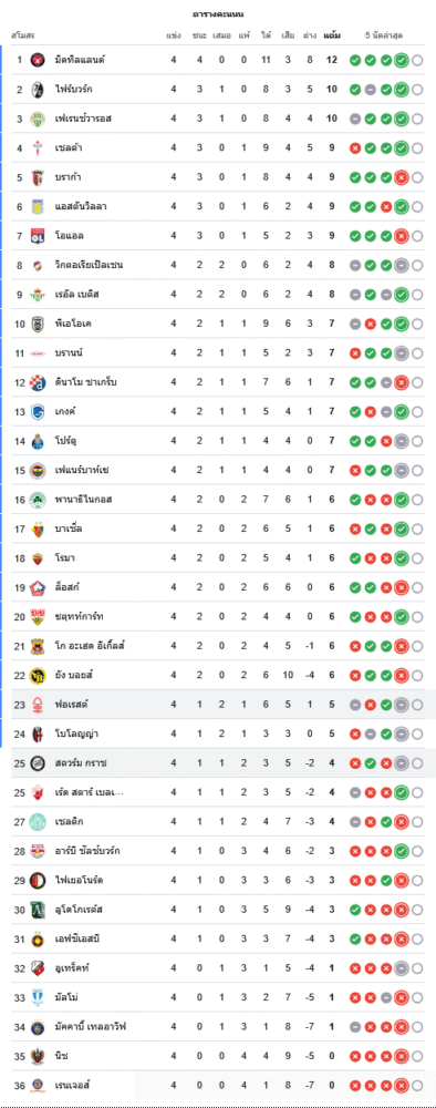 - ฟอเรสต์ แข่ง 4 นัด ชนะ 1 เสมอ 2 แพ้ 1 ยิงได้ 5 เสีย 7 มี 5 คะแนน อยู่โซนกลางล่างของตาราง ยังต้องเร่งเครื่องหากหวังติดท็อปโซนเพลย์ออฟ